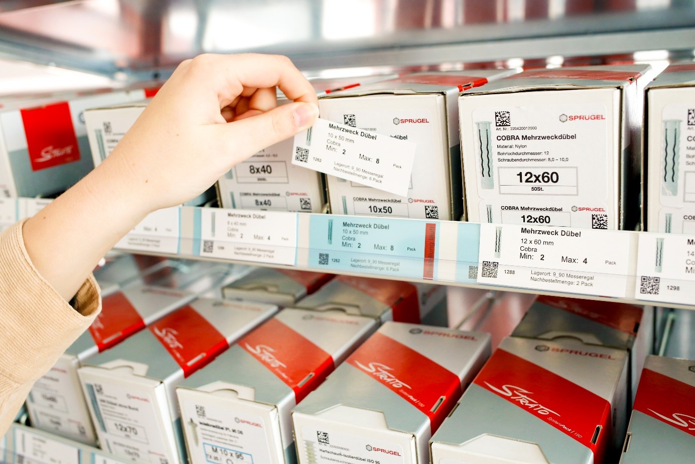 Im Handwerk hat sich die Regelbeschriftung mittels Doppeletikett als die Ideallösung herausgestellt. Das bedeutet die Beschriftung eines jeden Lagerplatzes besteht aus zwei Teilen – einer Regalbeschriftung und einer Bestellkarte.